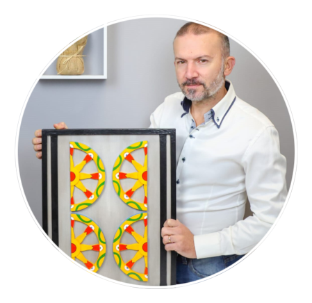 Nelle sue creazioni fonde innovazione e tradizione per creare opere uniche con un forte legame alla nostra terra. Da più di dieci anni nella sua continua evoluzione artistica ha creato diverse collezione private in arte contemporanea.Ha al suo attivo diverse mostre personali e collettive in varie località Siciliane